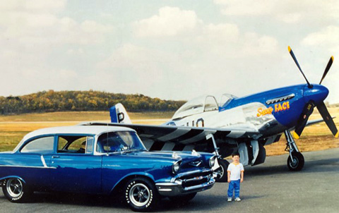 1957 Chevy 150 Sedan Utility With Greg's 5 Year Old Grandson And P-51